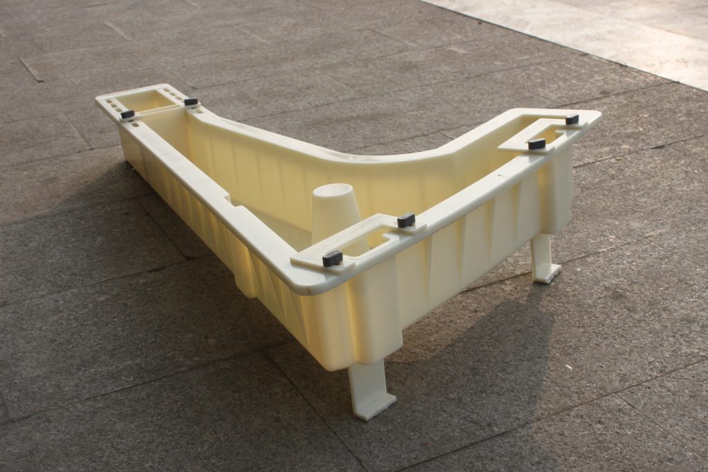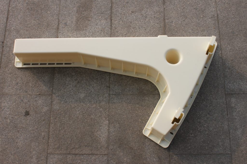 整體樣式來講,疏散平臺支架模具以7字形結構設計為主,搭配2個小型配件,分別是插銷小盒子與墊片,同樣采用ABS塑料加工而成。7字型設計最大的功能就是具備有效支撐力量的同時還降低了地鐵線路周邊空間的使用率。