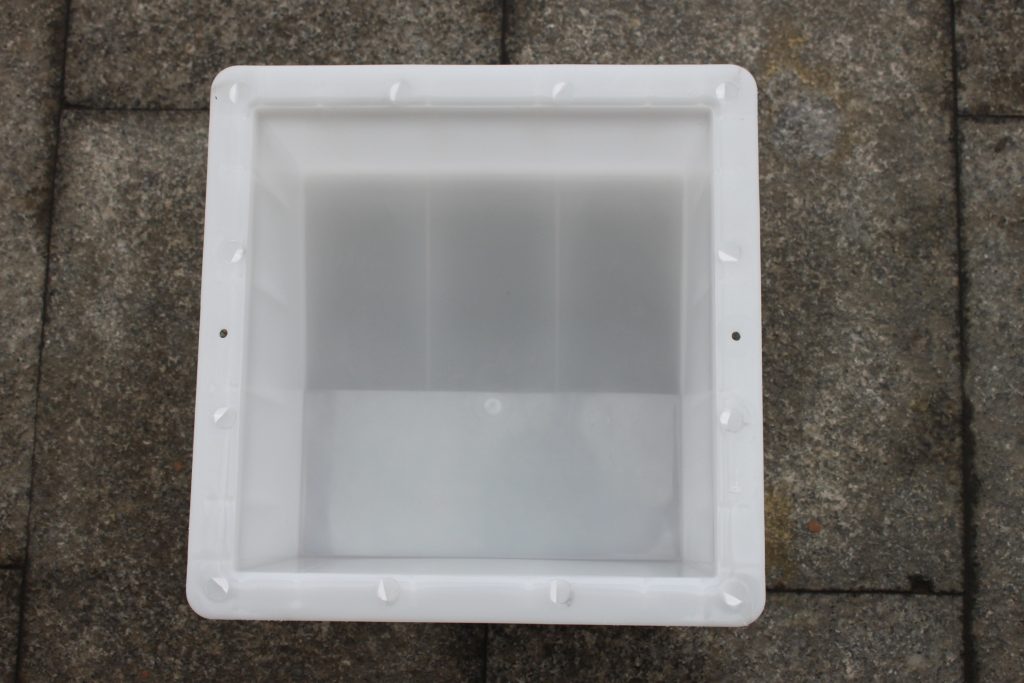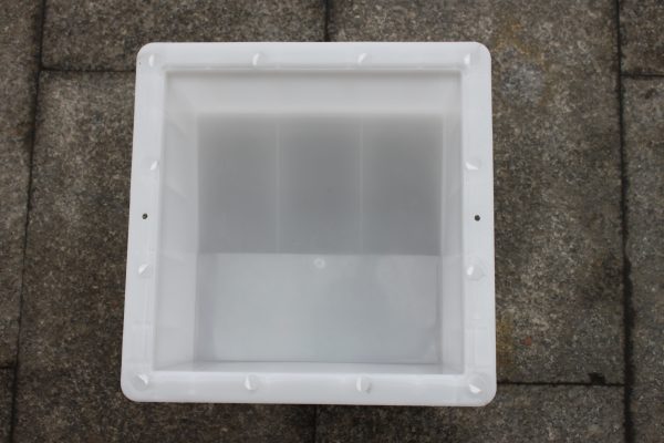 這款水泥側石塑料模具的主要尺寸構造有:整體方形內徑尺寸為25*25厘米,高度為15厘米,坡面高度12厘米,坡面起始于11里面,坡面的整體長度則是14厘米,詳細可見下圖。