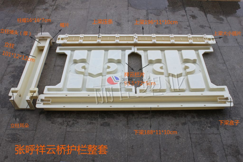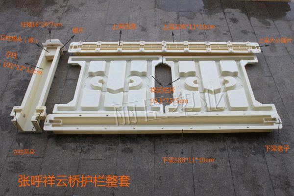 此混凝土護欄模具主要用以張呼鐵路(張家口南站-呼和浩特東站)所需水泥混凝土護欄預制建設,其中所有原料都采用高精度標準的ABS塑料經高溫注塑加工成型,水泥欄片主要以祥云雕刻設計。