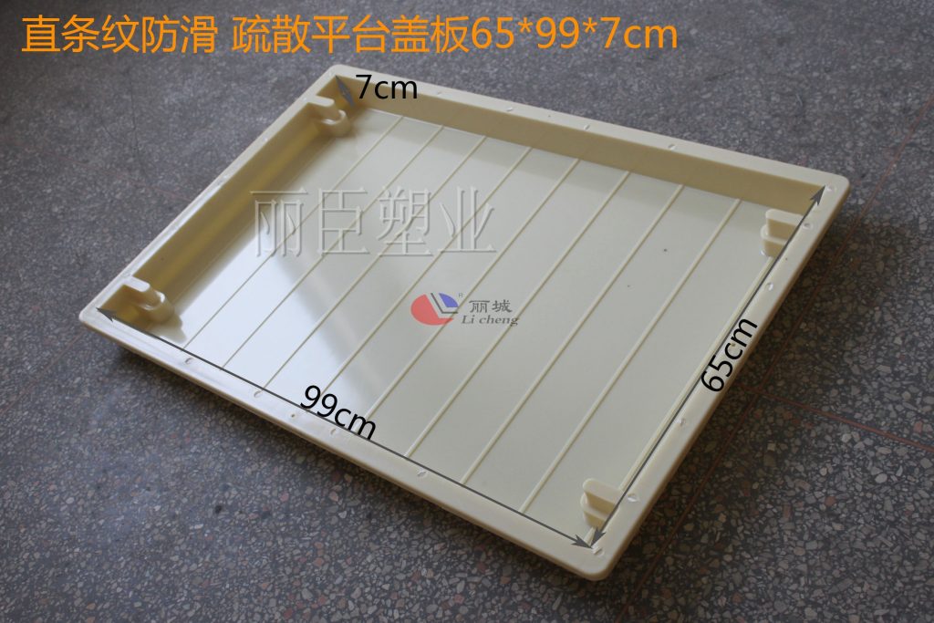 這款直條紋疏散平臺蓋板塑模設(shè)計上與別的疏散蓋板不同,以直條紋的形式來作為主要設(shè)計圖案,條紋的設(shè)計能有效加大人與地面的摩擦力,即便在潮濕的地面上也能較好的減少人的滑倒。四周都設(shè)計了缺口堵頭,對后期安裝上也能有效的減少安裝時間。