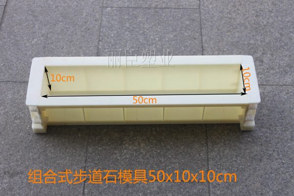 麗臣之前有推出同款組合式步道石模具,其規(guī)格是在25x10x10cm,而現(xiàn)在這款組合式步道石模具其規(guī)格是在50*10*10cm,在長度上大大的進行增加了,讓其后面澆筑型的的混凝土步道石水泥制品在使用過程中能更為便利。