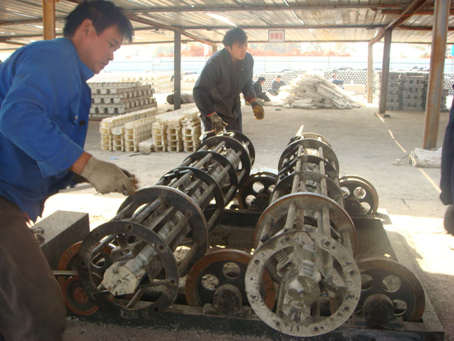 3.LC-5X2型隔柱振動加料機,改設備為離心成型前期塑模加料輔助機械,使用該成套加料機可大大減少人工費用,提高水泥制品生產功效的理想輔助機械。