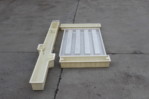欄片模具則采用PP聚丙烯材質(zhì),更好的模具韌性對施工面積較大的水泥制品更為有利。水泥護(hù)欄欄片模具的尺寸為149.5×96.5x9cm,采用5幅式欄桿設(shè)計(jì)。